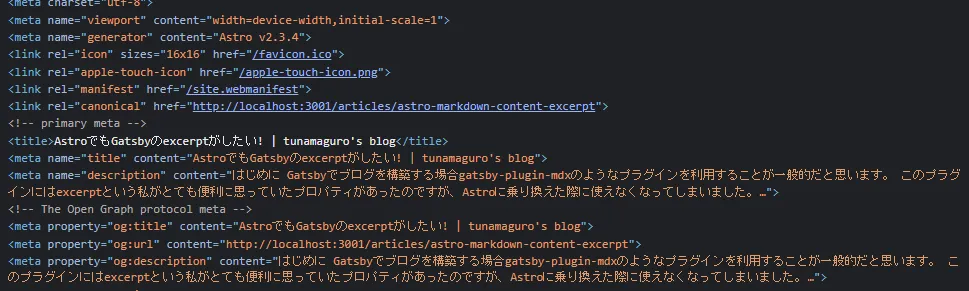---<BaseLayout title={title} description={contentDescription}// 略確認してみると確かに設定されています。